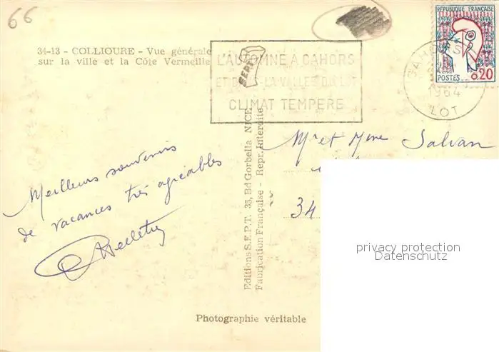 Collioure Cote Vermeille Collioure postalisch gelaufen 1964 Erhaltung siehe scans [NatalD47] NataID47