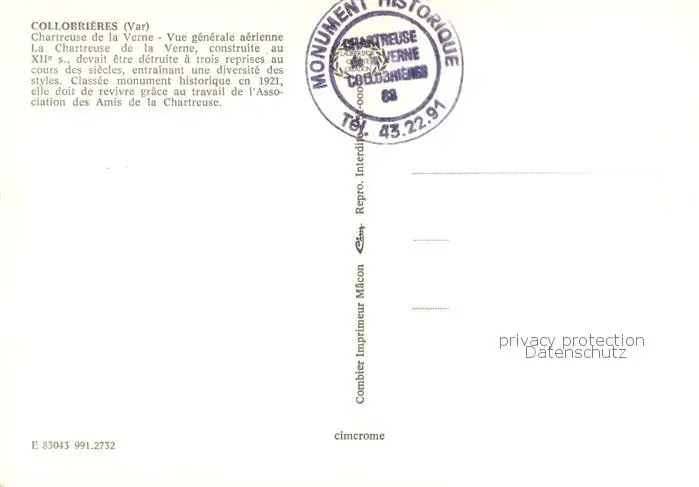 Collobrieres Chartreuse de la verne Vue generale aerienne Collobrieres postalisch nicht gelaufen nach 1965 Erhaltung siehe scans [WerneD78] WernPID7