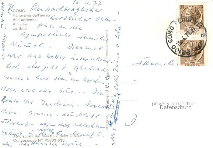 Como_Lago_di_Como Panorama dall'aereo Comersee Como_Lago_di_Como postalisch gelaufen 1977 Erhaltung siehe scans [FriedD77] Frierer