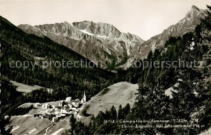 AK / Ansichtskarte Compatsch_Samnaun_Dorf_GR Unter Engadin mit Silvretta und Piz ot