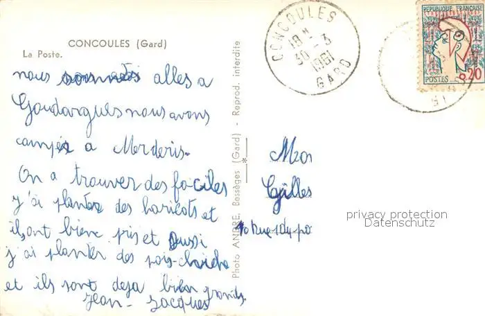 Concoules La Poste Concoules postalisch gelaufen 1961 Erhaltung siehe scans [WerneD78] WernPID7