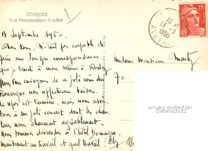 Conques_Aveyron Vue panoramique Sud Est Conques Aveyron postalisch gelaufen 1950 Erhaltung siehe scans [WerneD78] WernPID7