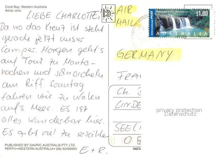 Coral_Bay_Australia Aerial view postalisch gelaufen nach 1965 Erhaltung siehe scans [FriedD77] Frierer