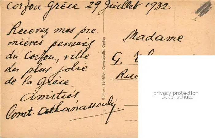 Corfou Esplanade Corfou postalisch gelaufen 1932 Erhaltung siehe scans [WerneD78] WernPID7