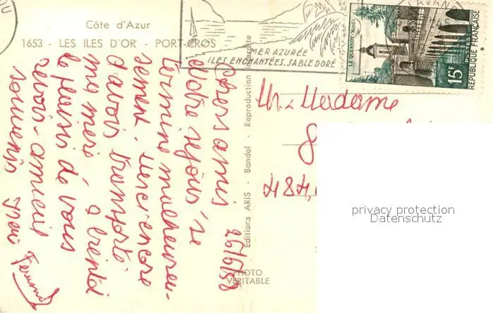 Cote_d_Azur Les Iles d’Or Port Eros Cote_d_Azur postalisch gelaufen 1958 Erhaltung siehe scans [WerneD78] WernPID7