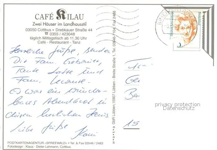 Cottbus Café Rilau Haeuser im Landhausstil Cottbus postalisch gelaufen 2000 Erhaltung siehe scans [FriedD77] Frierer