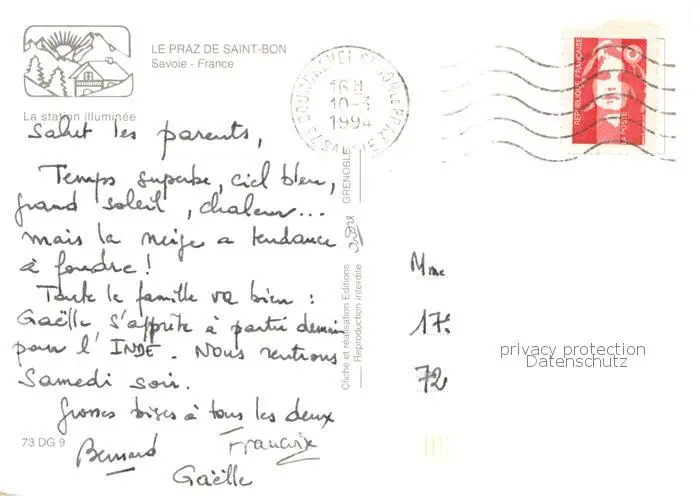 Courchevel Praz de St Bon Courchevel postalisch gelaufen 1994 Erhaltung siehe scans [WerneD78] WernPID7