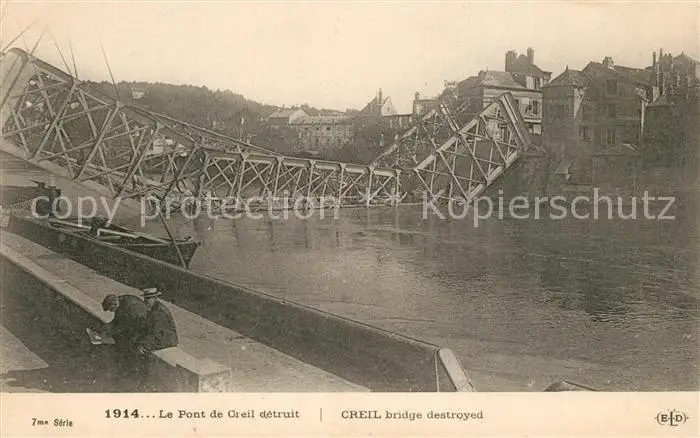 Creil Pont detruit Creil postalisch nicht gelaufen 1914 Erhaltung siehe scans [LiesaD40] LiesID40
