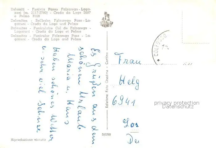 Croda_da_Lago Funivia Passo Winter Seilbahn Croda_da_Lago postalisch gelaufen nach 1965 Erhaltung siehe scans [KathaD81] Kathoren