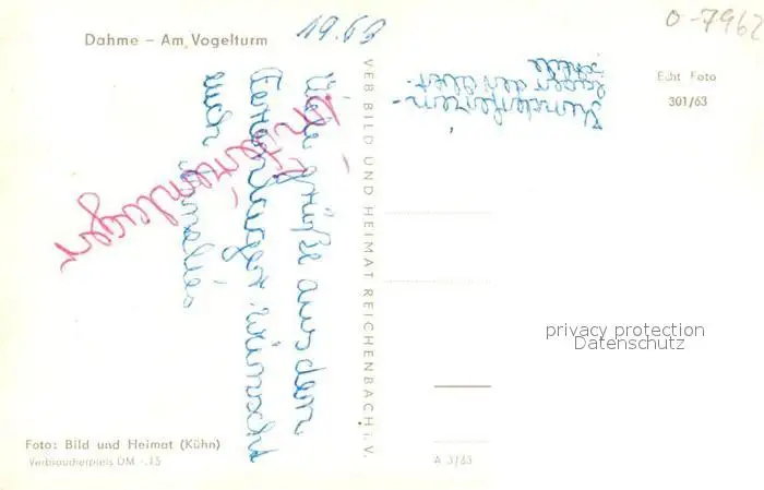 Dahme_Mark Vogelturm Dahme_Mark postalisch nicht gelaufen 1963 Erhaltung siehe scans [KathaD81] Kathoren