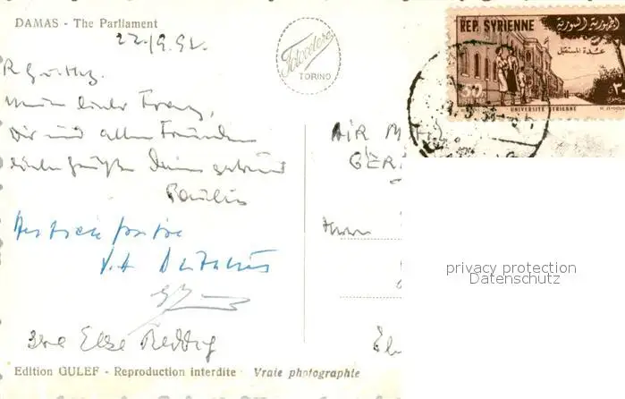 Damas_Damaskus_Syria Le Parlement Damas_Damaskus_Syria postalisch gelaufen 1992 Erhaltung siehe scans [WerneD78] WernPID7
