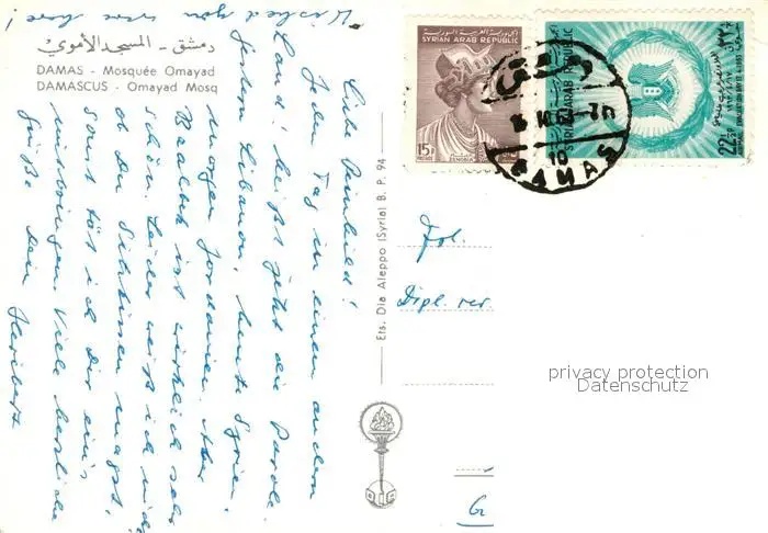 Damascus_Dimashq Mosquee Omayad Damascus Dimashq postalisch gelaufen 1921-1965 Erhaltung siehe scans [WerneD78] WernPID7