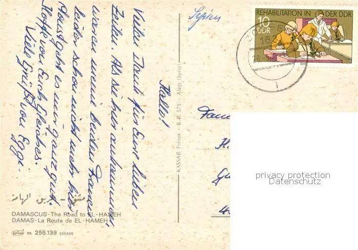 Damascus_Dimashq Route de El Hameh Damascus Dimashq postalisch gelaufen nach 1965 Erhaltung siehe scans [LiesaD40] LiesID40