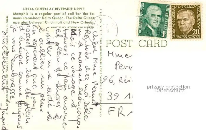 Dampfer_Schaufelrad Delta Queen Riverside Drive Memphis postalisch gelaufen nach 1965 Erhaltung siehe scans [PaolaD17] PaolPID1