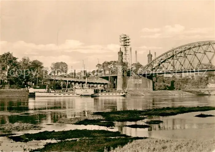 AK / Ansichtskarte Dampfer_Seitenrad Riesa Elbbruecke
