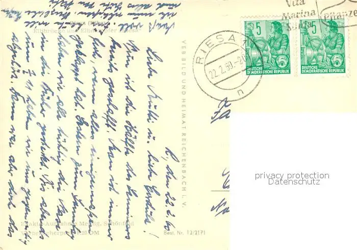 Dampfer_Seitenrad Riesa Elbbruecke postalisch gelaufen 1960 Erhaltung siehe scans [PaolaD17] PaolPID1