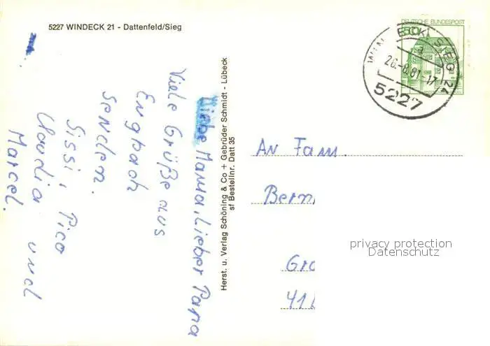 Dattenfeld Panorama Dattenfeld postalisch gelaufen 1981 Erhaltung siehe scans [FriedD77] Frierer