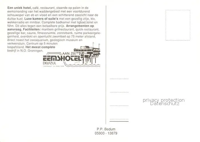 Delfzijl Eemshotel Gastraeume Delfzijl postalisch nicht gelaufen nach 1965 Erhaltung siehe scans [WerneD78] WernPID7