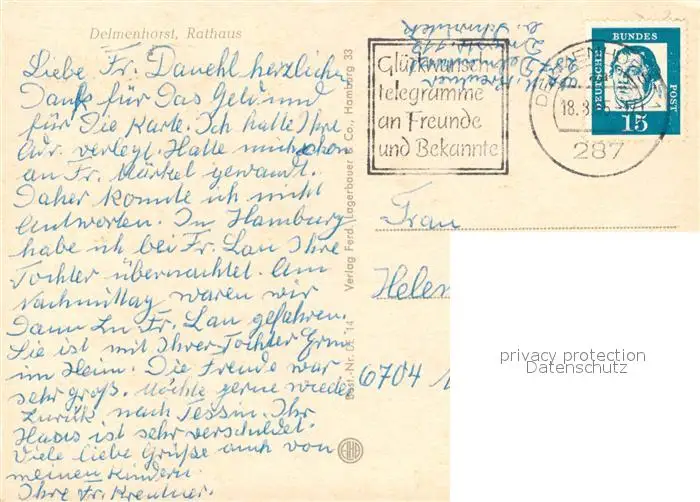 Delmenhorst Rathaus Delmenhorst postalisch gelaufen 1965 Erhaltung siehe scans [KathaD81] Kathoren