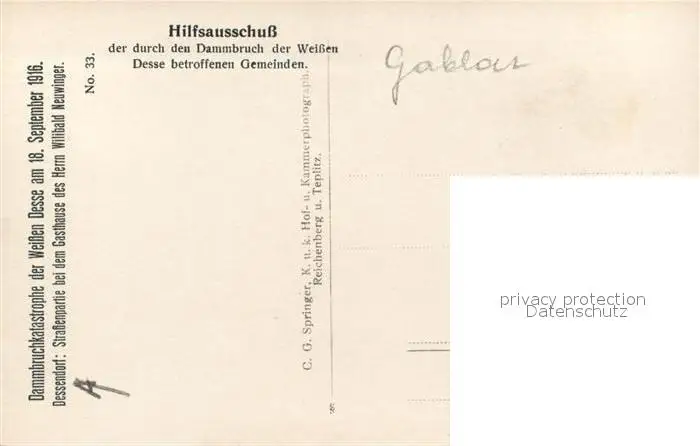 Dessendorf Dammbruchkatastrophe der Weissen Desse Dessendorf postalisch nicht gelaufen 1916 Erhaltung siehe scans [FriedD77] Frierer