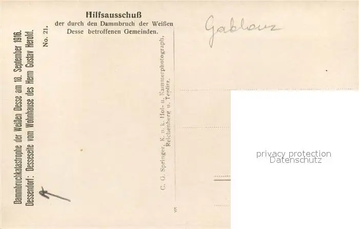 Dessendorf Dammbruchkatastrophe der Weissen Desse Dessendorf postalisch nicht gelaufen 1916 Erhaltung siehe scans [FriedD77] Frierer