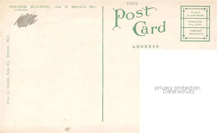 Detroit_Michigan Finance Building Illustration postalisch nicht gelaufen 1921-1965 Erhaltung siehe scans [FriedD77] Frierer