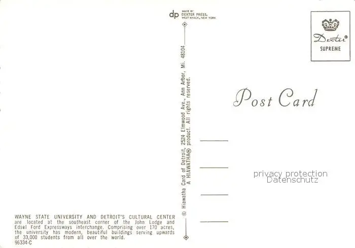 Detroit_Michigan Wayne State University and Cultural Center aerial view postalisch nicht gelaufen nach 1965 Erhaltung siehe scans [FriedD77] Frierer