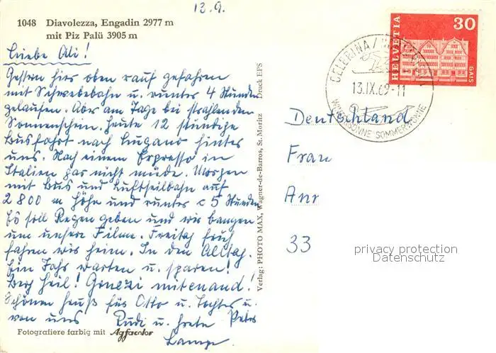 Diavolezza Engadin Piz Pal? Diavolezza postalisch gelaufen 1969 Erhaltung siehe scans [KathaD81] Kathoren