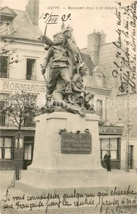 Dieppe_76 Monument postalisch gelaufen 1909 Erhaltung siehe scans [FriedD77] Frierer