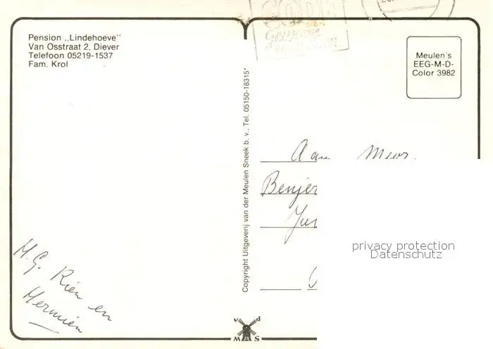 Diever Pension Lindehoeve Diever postalisch gelaufen nach 1965 Erhaltung siehe scans [KathaD81] Kathoren