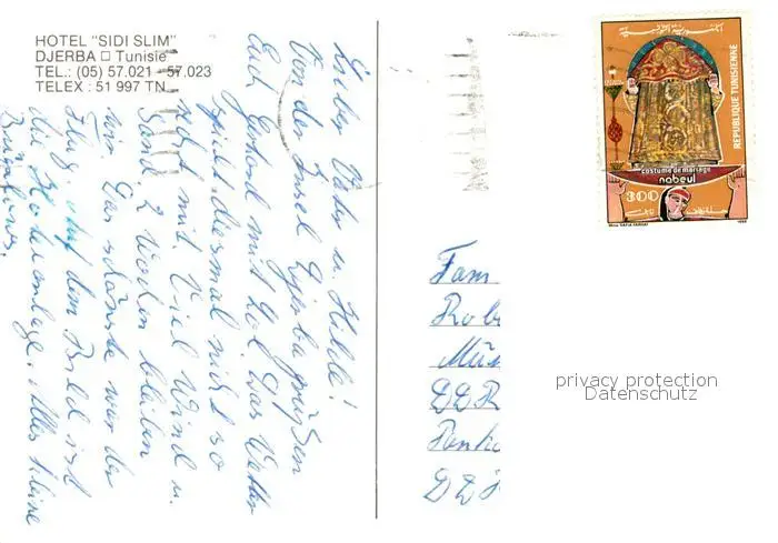 Djerba Hotel Sidi Slim Djerba postalisch gelaufen nach 1965 Erhaltung siehe scans [KathaD81] Kathoren
