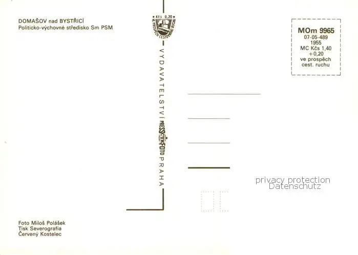 Domasov_nad_Bystrici_CZ Politicko vychovne stredisko Sm PSM postalisch nicht gelaufen nach 1965 Erhaltung siehe scans [FriedD77] Frierer