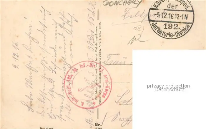 Donchery Schloss Bellevue Donchery postalisch gelaufen 1916 Feldpost Erhaltung siehe scans [FriedD77] Feldpost Frierer
