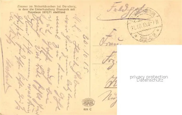 Donchery Zimmer im Webehaeuschen Donchery postalisch gelaufen 1915 Feldpost Erhaltung siehe scans [FriedD77] Feldpost Frierer