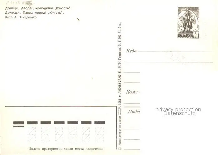 Donezk Jugendpalast "Jugend" Donezk postalisch nicht gelaufen nach 1965 Erhaltung siehe scans [IrynaD87] Iryn PID
