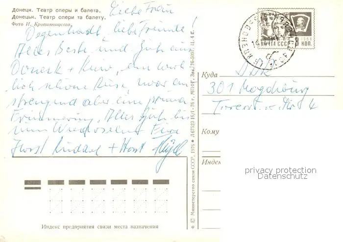 Donezk Theater Donezk postalisch gelaufen nach 1965 Ganzsache (eingedruckte Briefmarke) Erhaltung siehe scans [NatalD47] Ganzsache (eingedruckte Briefmarke) NataID47