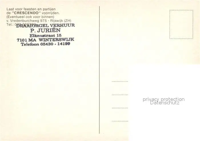 Drehorgel Crescendo Winterswijk postalisch nicht gelaufen nach 1965 Erhaltung siehe scans [PaolaD17] PaolPID1