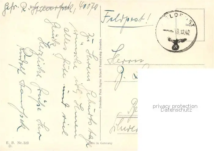 Dresden Rosa Rosen Dresden postalisch gelaufen 1942 Erhaltung siehe scans [WerneD78] WernPID7