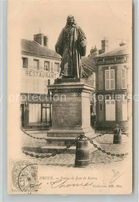 Dreux Statue Jean de Rotrou Dreux postalisch gelaufen bis 1920 Erhaltung siehe scans [KathaD81] Kathoren