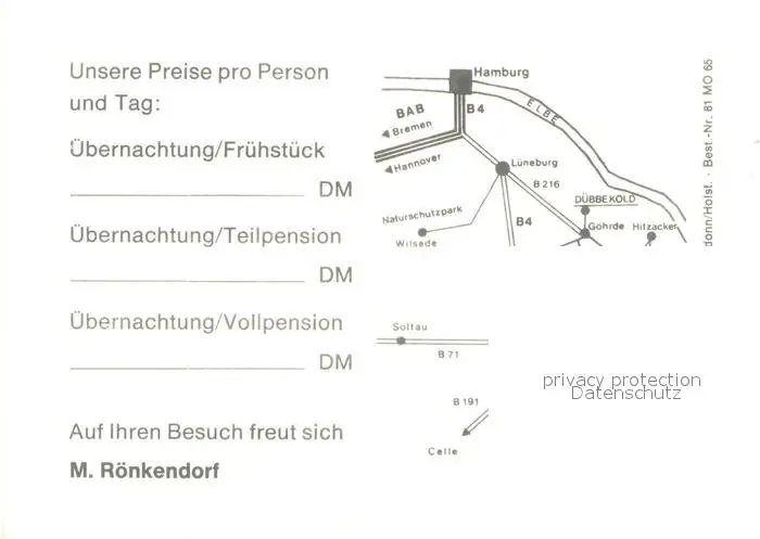 Duebbekold Pension Duebbekold postalisch nicht gelaufen nach 1965 Werbekarte (keine Postkarte) Erhaltung siehe scans [FriedD77] Werbekarte (keine Postkarte) Frierer