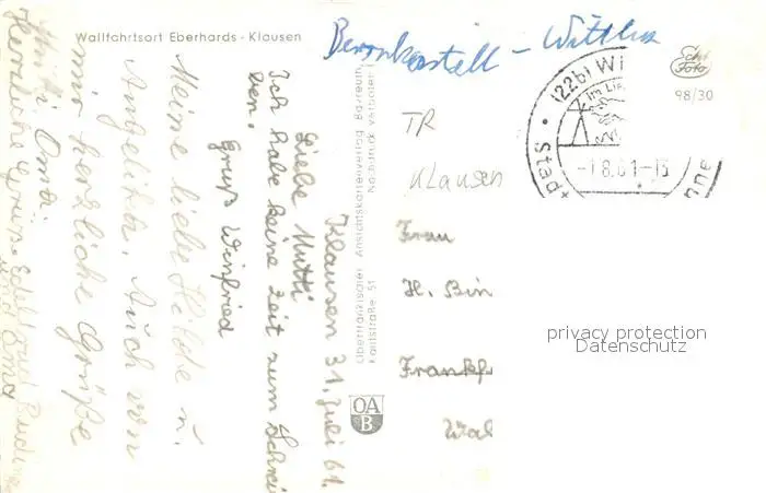 Eberhards-Clausen Wallfahrtkirche Eberhards-Clausen postalisch gelaufen 1961 Erhaltung siehe scans [KathaD81] Kathoren