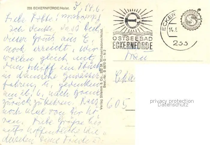 Eckernfoerde Strand Eckernfoerde postalisch gelaufen nach 1965 Erhaltung siehe scans [NatalD47] NataID47