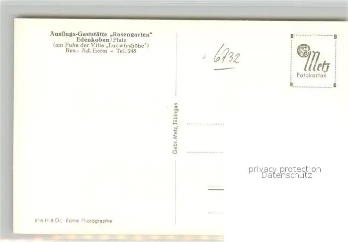 Edenkoben Ausflugs Gaststaette Rosengarten Edenkoben postalisch nicht gelaufen 1921-1965 Erhaltung siehe scans [WerneD78] WernPID7