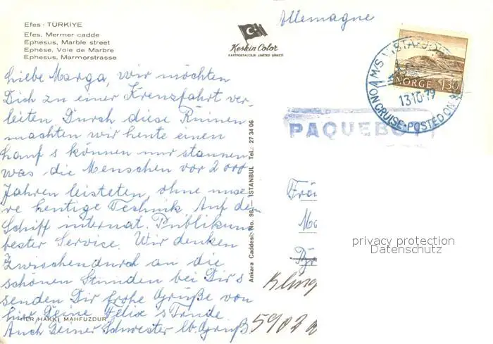 Efes Marmorstrasse Efes postalisch gelaufen 1979 Erhaltung siehe scans [NatalD47] NataID47