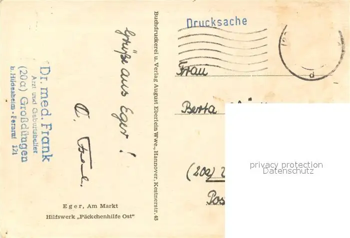 Eger_Cheb_Tschechien Am Markt Hilfswerk Paeckchenhilfe Ost postalisch gelaufen 1921-1965 Erhaltung siehe scans [FriedD77] Frierer