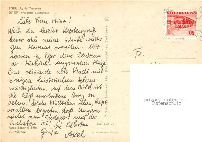 Eger_Erlau Agria Taverna Eger_Erlau postalisch gelaufen nach 1965 Erhaltung siehe scans [PaolaD17] PaolPID1