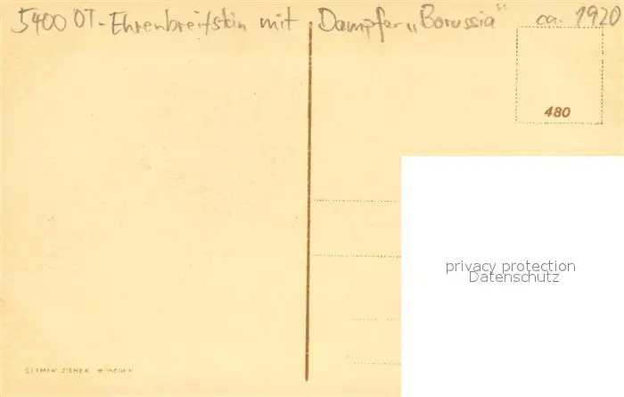 Ehrenbreitstein Festung mit Dampfer Borussia Ehrenbreitstein postalisch nicht gelaufen 1920 Erhaltung siehe scans [WerneD78] WernPID7