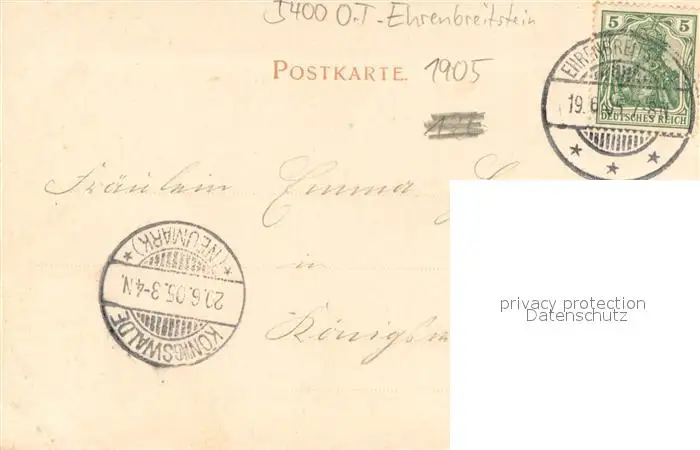 Ehrenbreitstein Panorama mit Festung Ehrenbreitstein postalisch gelaufen 1905 Erhaltung siehe scans [WerneD78] WernPID7