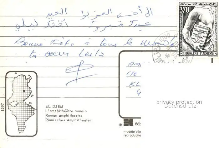 El-Djem Roemisches Amphitheater El-Djem postalisch gelaufen 1990 Erhaltung siehe scans [FriedD77] Frierer