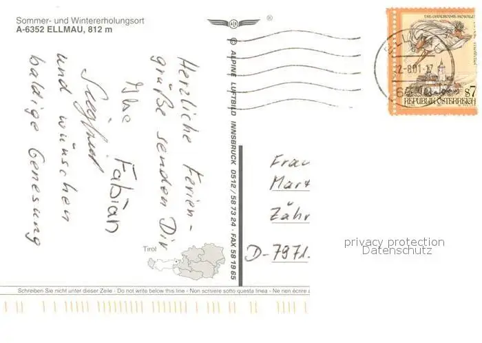 Ellmau_Tirol Fliegeraufnahme Ellmau Tirol postalisch gelaufen 2001 Erhaltung siehe scans [WerneD78] WernPID7